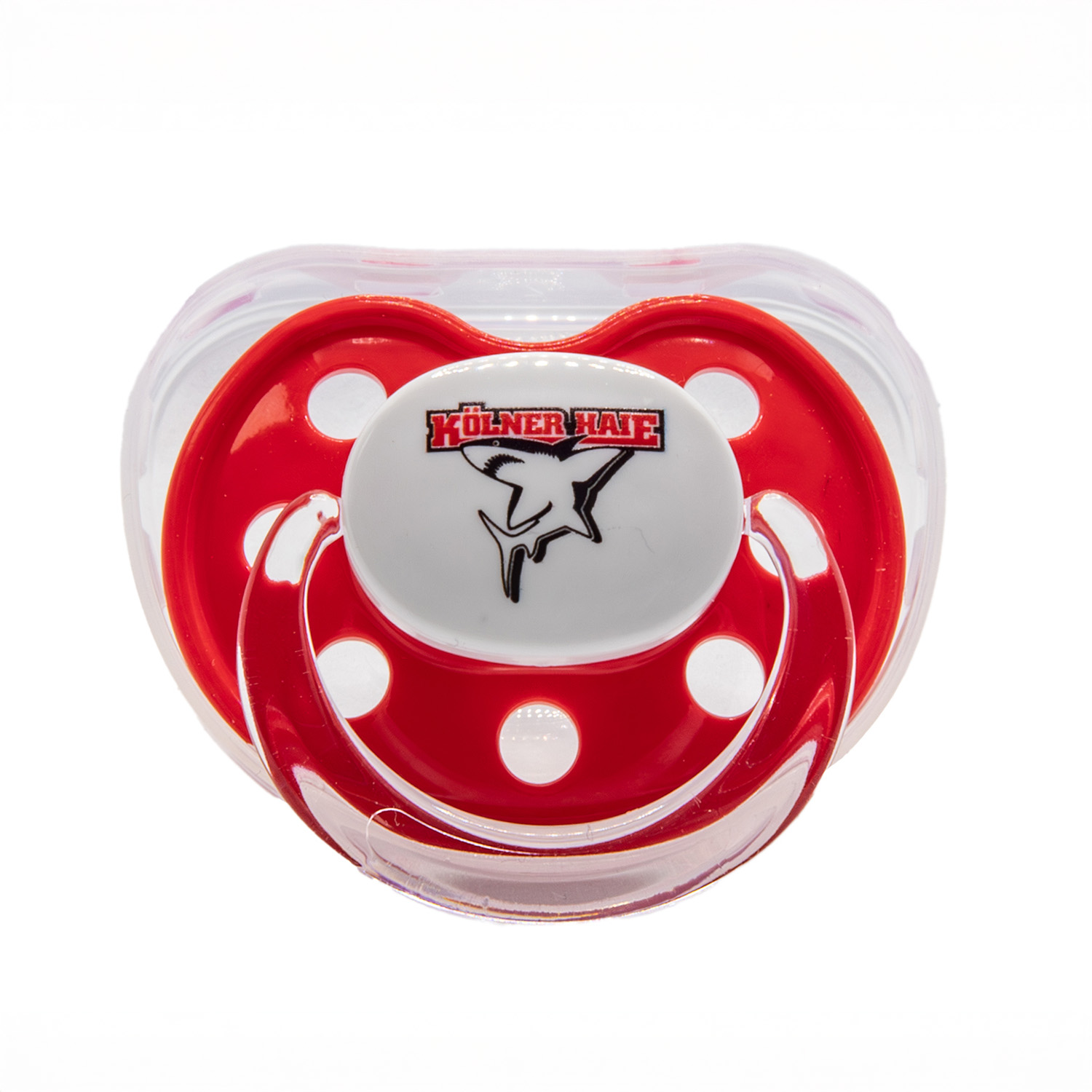 Mit dem Baby-Schnuller NUCKI zeigen schon die Kleinsten, für welchen Club ihr Herz schlägt. Das leuchtende Rot und das Haie-Logo machen den Schnuller zum süßen Hingucker im Alltag. Perfekt für kleine Fans, die von Anfang an dazugehören!