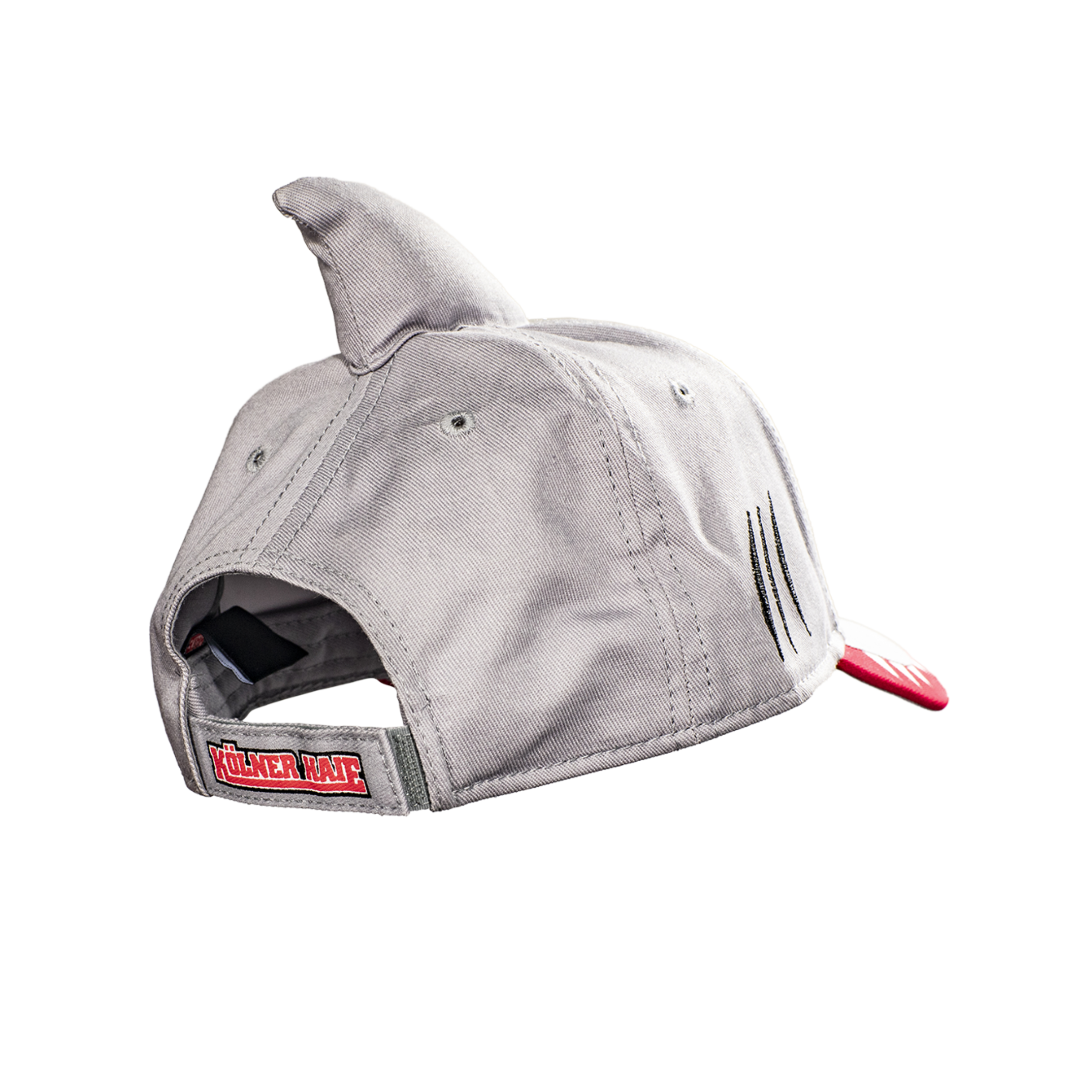 Dieses Cap mit Hai-Features ist ein echter Hingucker für alle Fans der Kölner Haie. Die Cap verfügt über eine Flosse oben auf der Cap, Augen, die vorne gestickt sind, und Zähne, die auf dem Schirm gedruckt sind. Der Schriftzug "Kölner Haie" am Verschluss ist gedruckt. Die Cap ist größenverstellbar mit einem Klettverschluss, was eine individuelle Anpassung ermöglicht. Eine Besonderheit sind die umstickten Lüftungslöcher sowie die gepolsterte Flosse, die für zusätzlichen Komfort sorgen. Das Material besteht zu 100% aus Baumwolle und bietet somit einen angenehmen Tragekomfort. Ein einzigartiges Accessoire für alle Fans der Kölner Haie!