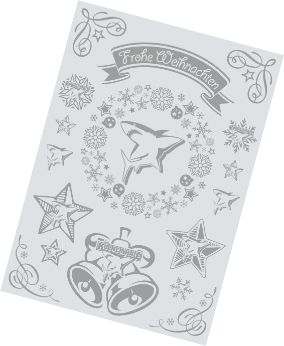 Ist denn schon Weihnachten? Sei vorbereitet, wenn es heißt dein Heim in ein weihnachtliches Ambiente zu versetzen. Mit diesen Fensterbildern kannst du gleichzeitig weihnachtliche Stimmung erzeugen und zeigen, dass auch die Haie für dich zu Weihnachten dazu gehören.