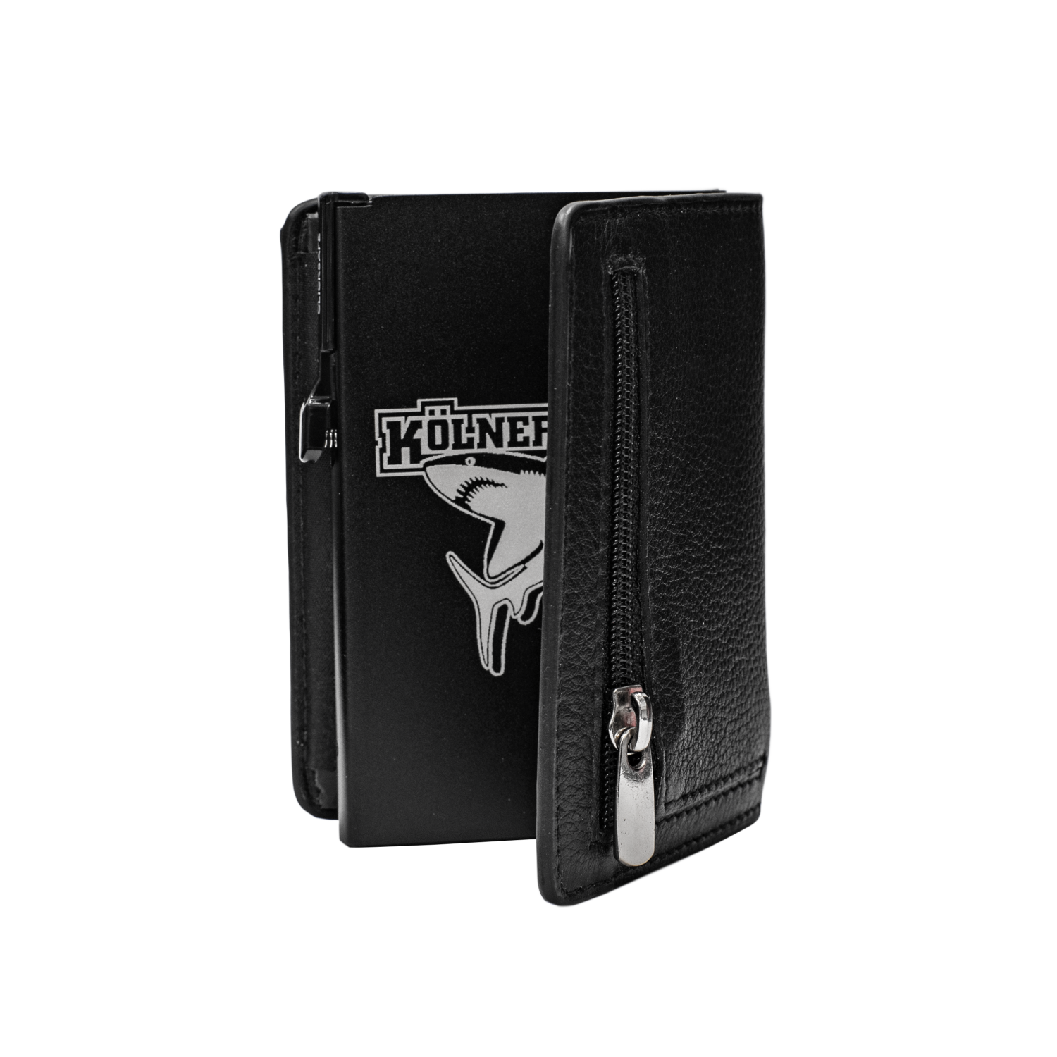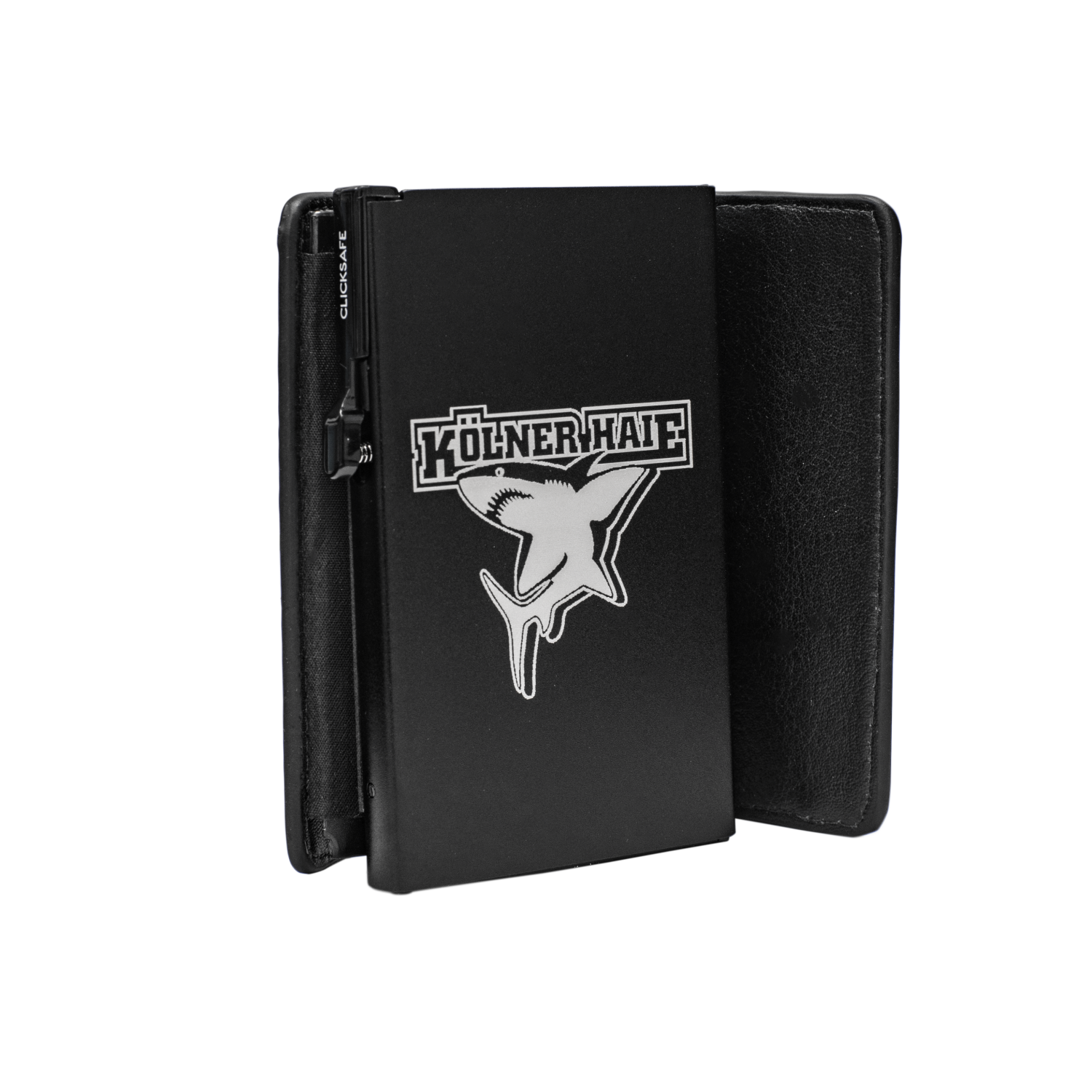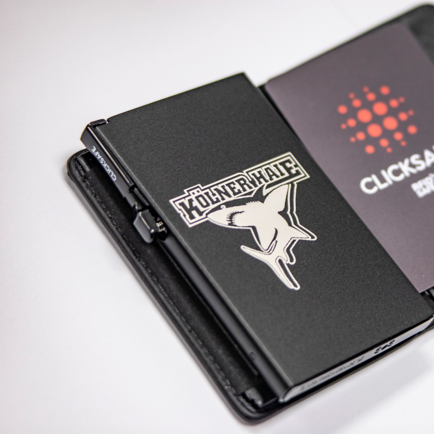 Die CLICKSAFE Geldbörse bietet Platz für bis zu sechs Karten, die du per Knopfdruck blitzschnell griffbereit hast. Das kompakte Format passt in jede Tasche und eignet sich ideal für Fans, die unterwegs auf nichts verzichten wollen. Das Kölner Haie Logo rundet das schlichte schwarze Design ab und sorgt für eine sportliche Note. Leicht, robust und sicher – ein Must-have für jeden Fan.