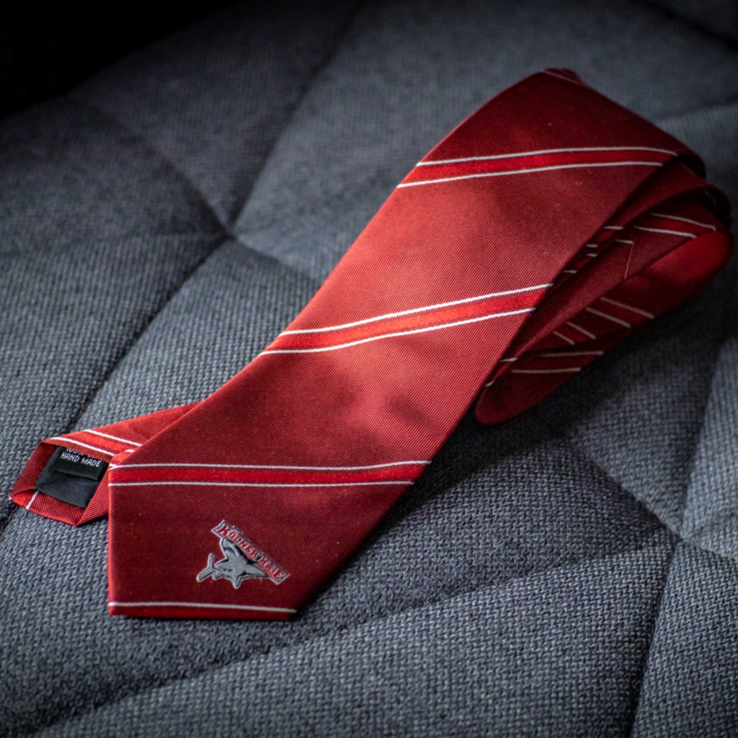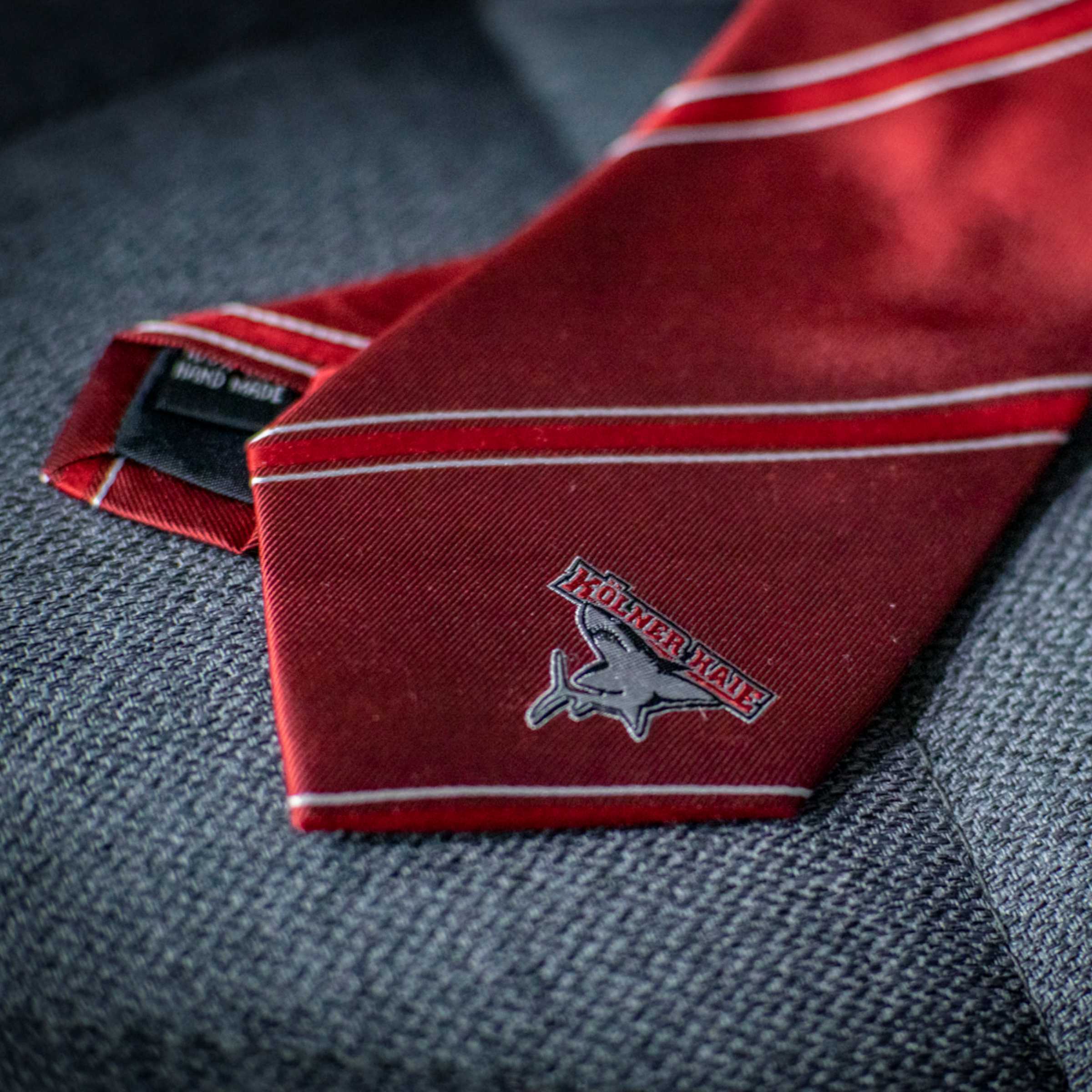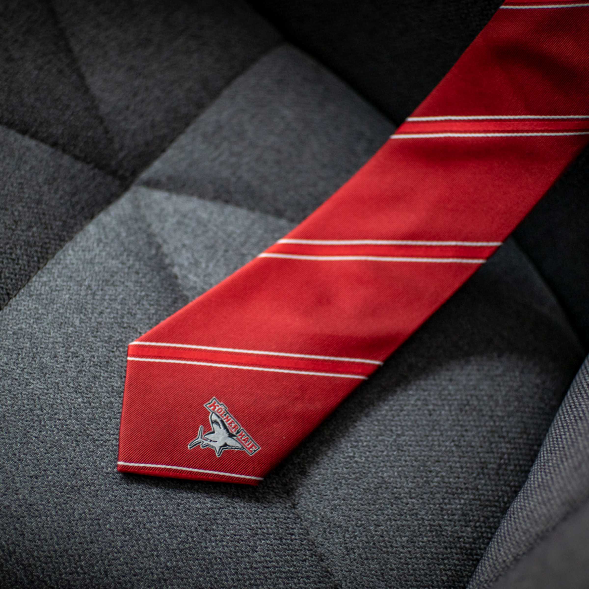 Auch zu einem feierlichen Anlass die Haie mit dabei haben? Kein Problem. Mit dieser roten Krawatte punktest du auch neben dem Eis. Durch das schlichte Design mit Streifen und dem LOGO der Haie am unteren Ende ist diese Krawatte ein echter Hingucker.