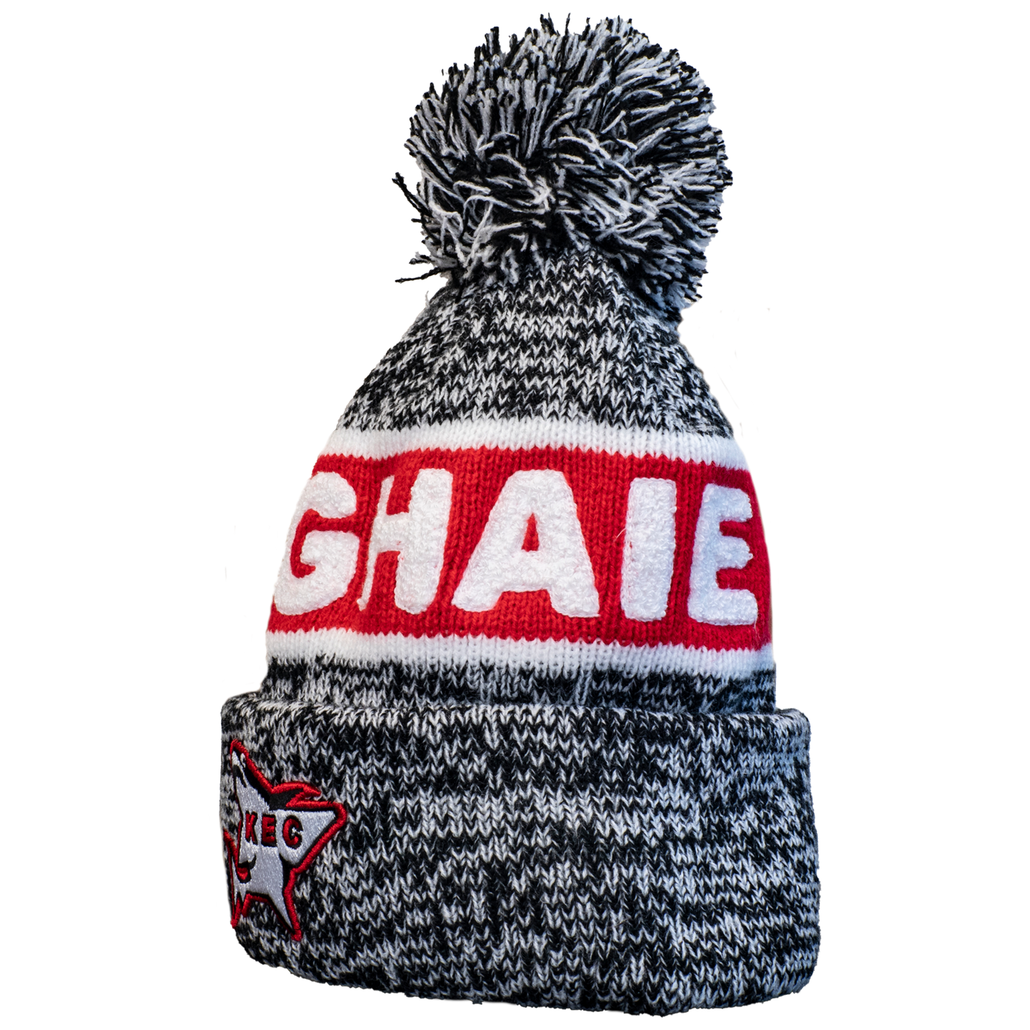 Mit der Mütze JUNGHAIE zeigst du, wo dein Herz schlägt – bei unserem Nachwuchs! Das melierte Schwarz-Weiß, der markante rote Schriftzug und die flauschige Bommel verpassen jedem Winterlook den Haie‑Touch. Der umgeschlagene Rand mit gesticktem Junghaie-Logo setzt ein klares Statement für die Talentschmiede der Kölner Haie.